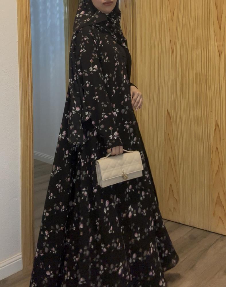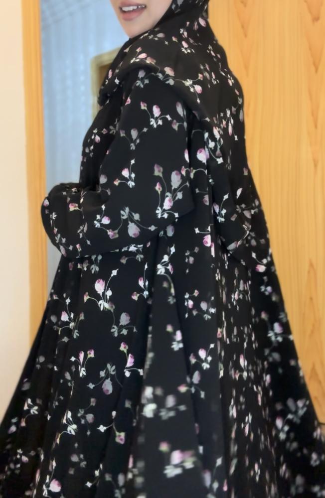 عبايه قماش طرحه مشجر مع تبطين بالاسود