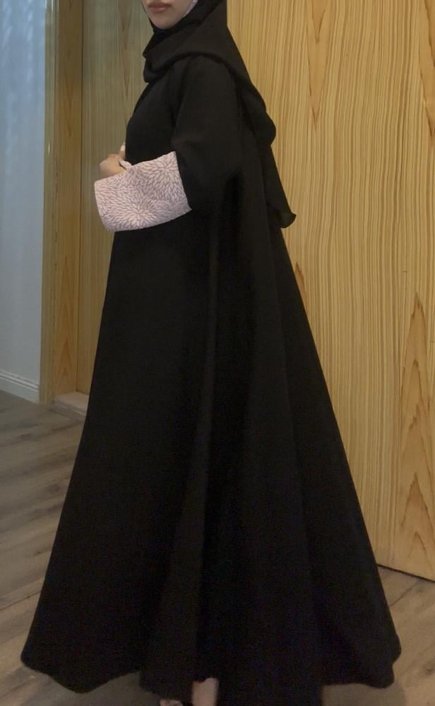 عبايه قماش كتان باكمام قماش وردي تفته مشجر