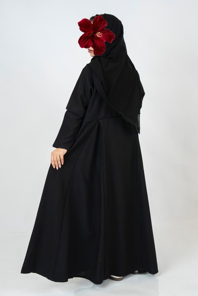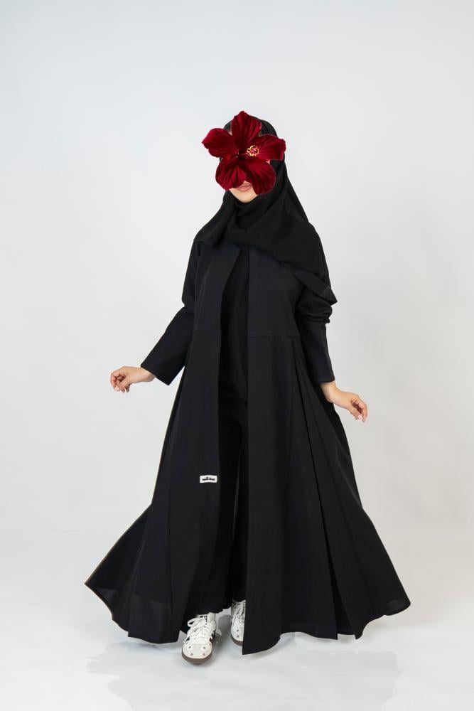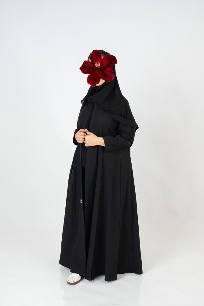 عبايه كتان بكسراتلون الطرحه اسود بطرف كتان طويلقصه العباية ربع كلوشننصح بالغسيل الجاف في المغاسل المختصه